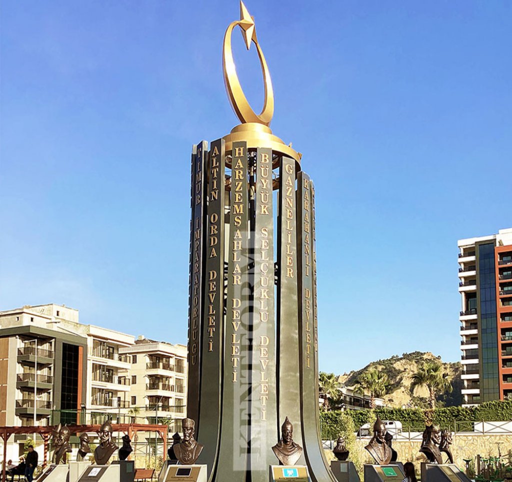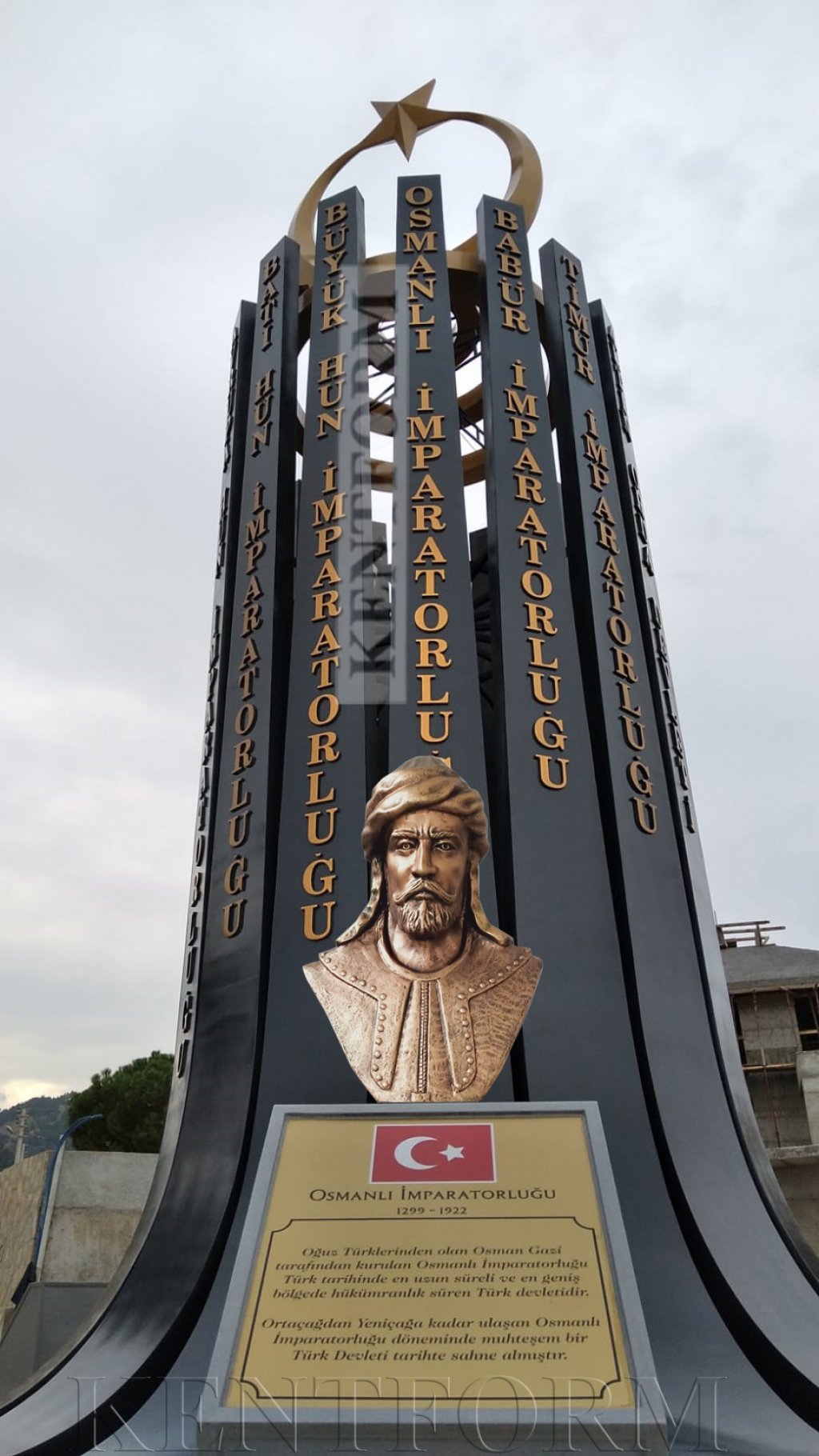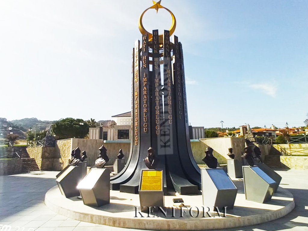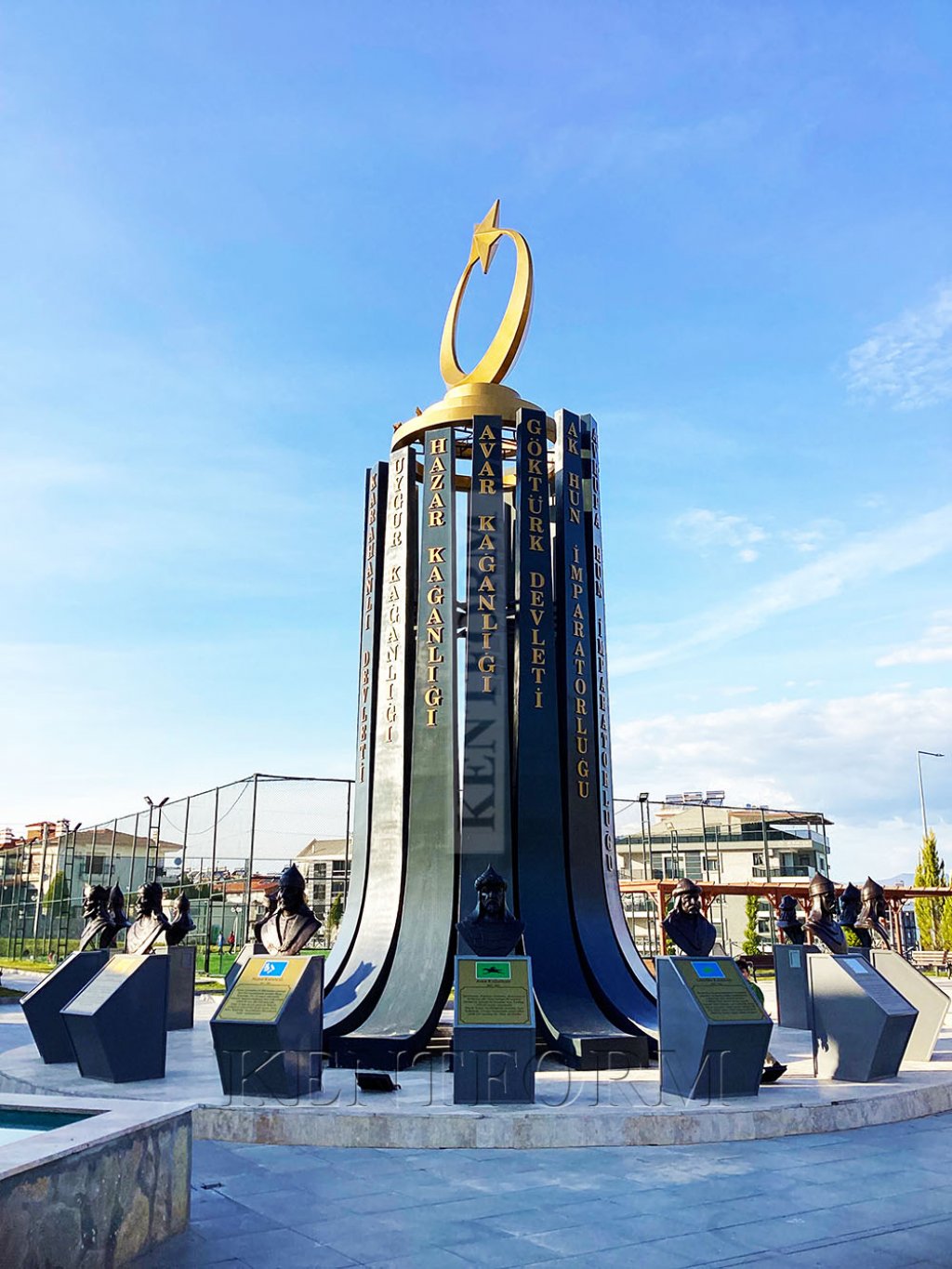 16 Türk devletinin vurgulandığı anıtta 16 Türk Devletlerini temsil eden sütunlar bulunmaktadır. Bu sütunların üst kısımları inişli çıkışlı tarihi olan bir Türk Devletlerini sembolize etmektedir.16 Türk Devleti’ni simgeleyen sütunların önünde bulunan kitabe formunda düşünülen kaidelerin üzerinde 16 Türk Devletlerinin sancakları ve o devletin başlangıç ve bitiş tarihleri yer almaktadır.Anıt 12 metre yüksekliğinde uygulanmıştır.