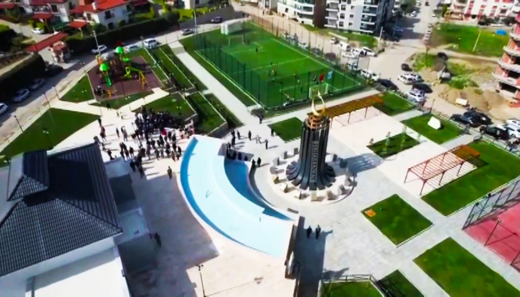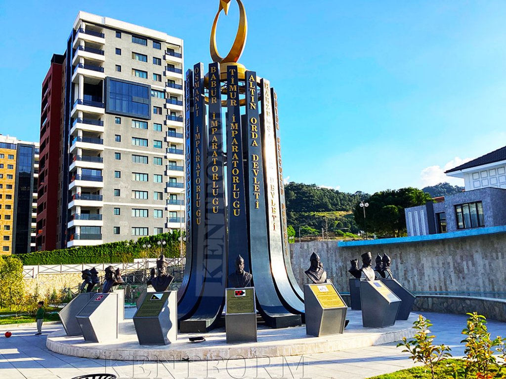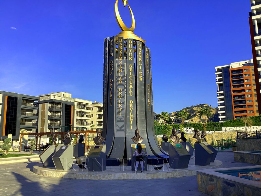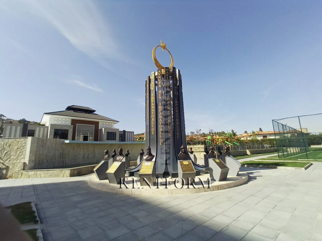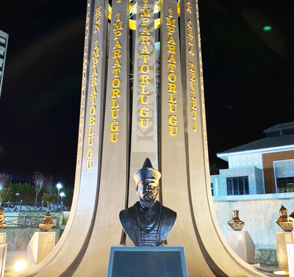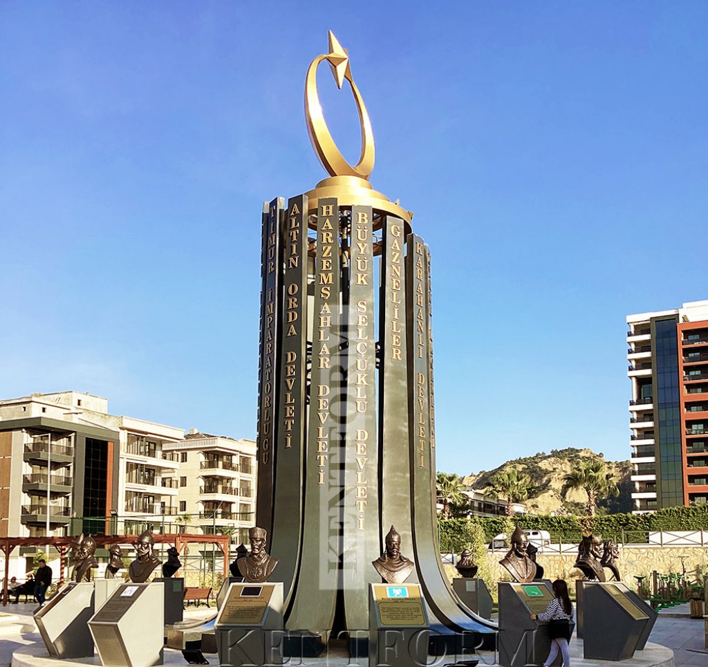 16 Türk devletinin vurgulandığı anıtta 16 Türk Devletlerini temsil eden sütunlar bulunmaktadır. Bu sütunların üst kısımları inişli çıkışlı tarihi olan bir Türk Devletlerini sembolize etmektedir.16 Türk Devleti’ni simgeleyen sütunların önünde bulunan kitabe formunda düşünülen kaidelerin üzerinde 16 Türk Devletlerinin sancakları ve o devletin başlangıç ve bitiş tarihleri yer almaktadır.Anıt 12 metre yüksekliğinde uygulanmıştır.