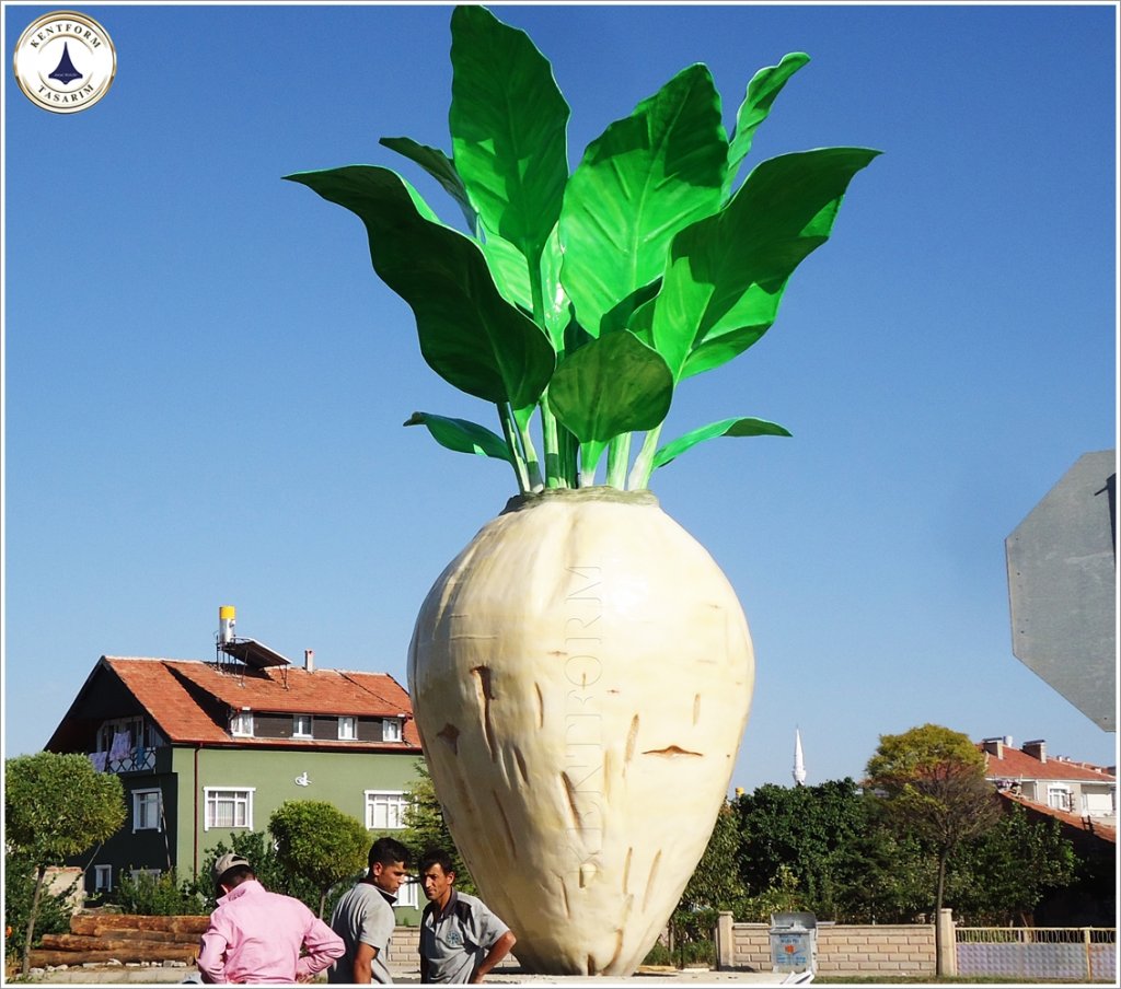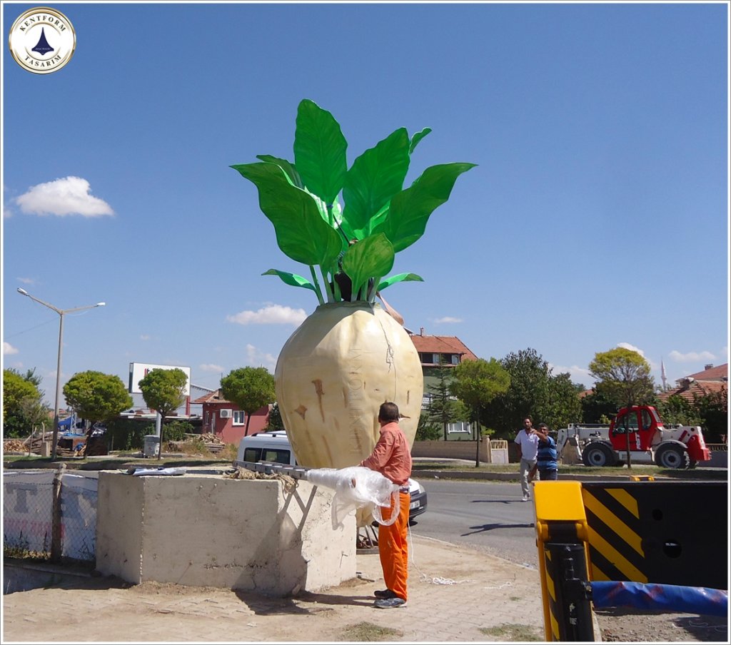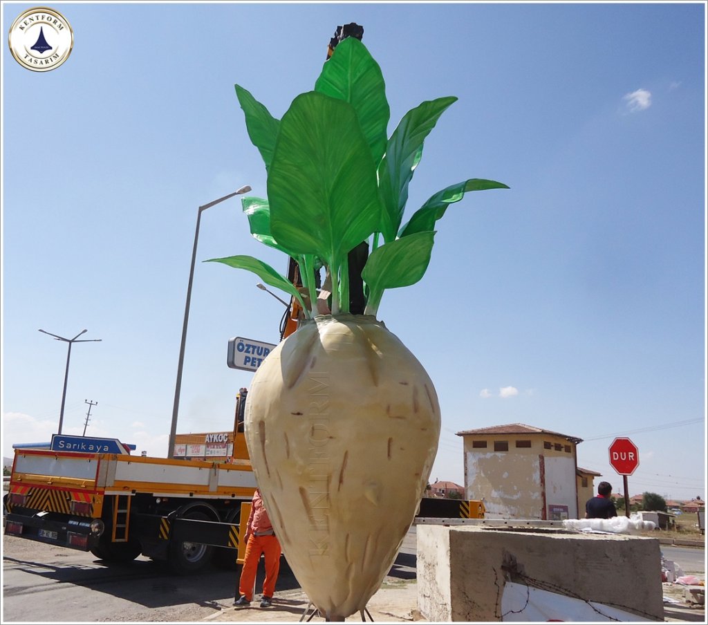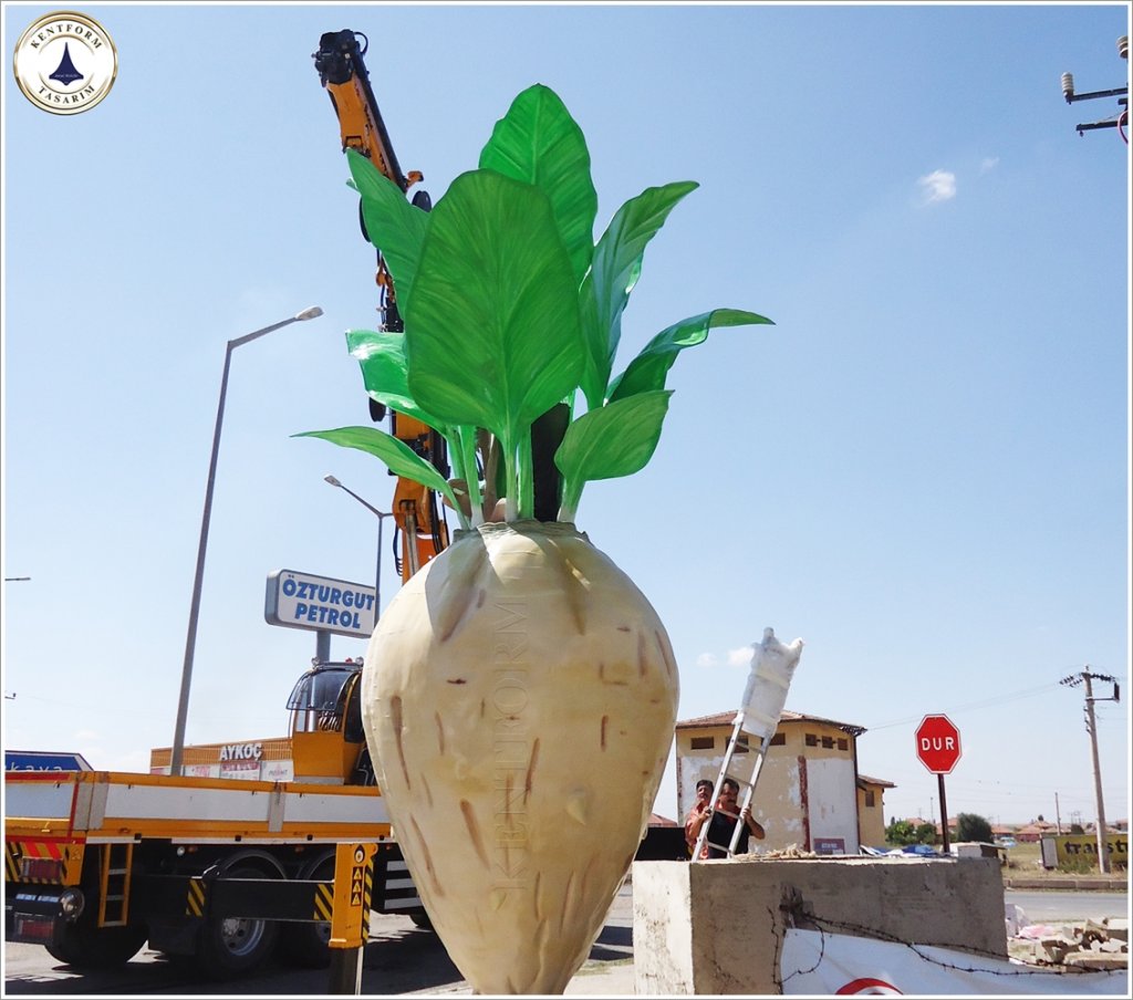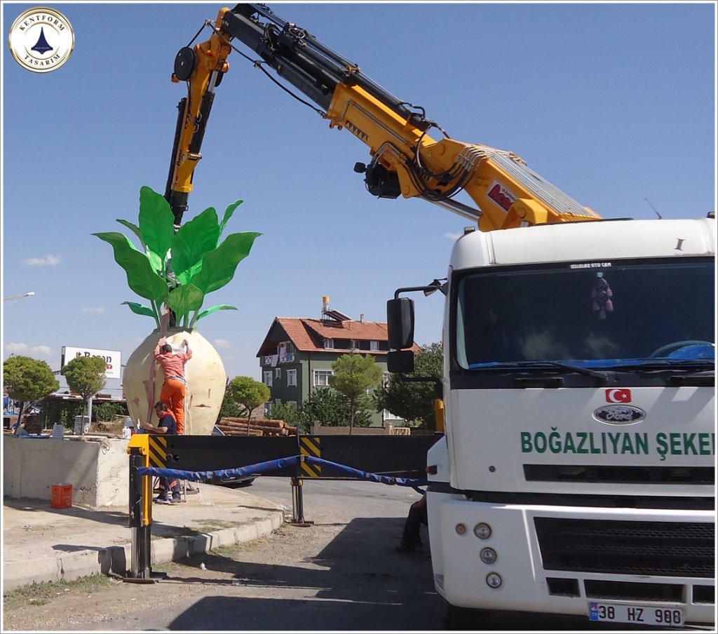 Pancar Heykeli: gerçekçi detaylarla işlenen pancar heykeli,Boğazlıyan yöresinin coğrafi işaretli ürünü bölgenin ekonomisine katkı sağlamasını ifa ederken heykel çalışması ile pancar üretiminin kültürel bir miraslarından olduğunuda vurguluyor.Şehrin kimliğini yansıtan Pancar Heykeli, meydanlardan parklara, her ortamı estetikle buluşturacak şekilde tasarlandı.Sanatsal detayları öne çıkaran heykelçalışması, dayanıklı ve hafif yapısıyla cam elyaf takviyeli fiberglas malzeme kullanılarak üretildi. Fiberglas malzeme sayesinde heykel, dış mekan koşullarına karşı uzun ömürlü olması ve gerçekçi dokusu ve zarif tasarımıyla şehrinizin estetik dokusuna uyum sağlamaktadır.Pancar Heykeli 600 cm yüksekliğinde uygulanmıştır.