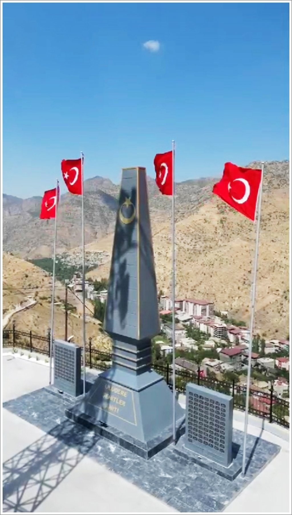 Uludere'de hayatını kaybeden mehmetçiklerimize ithafen uygulanmış şehitlik anıtı eserimiz,proje tasarım aşamasından,atölye uygulamsına ve alana montaş çalışmasına kadar heykel atölyemizde tamamlanmıştır.Şehitlik anıtı uygulamsı iç yapısı metal konstrüksüyonlarla destekelendirilmiştir.Anıtın dış yüzey kaplaması cam elyaf takviyeli fiberglas CTP malzemeden imal edilmiş güçlü aydınlatma sistemleri uygulanmıştır. Anıt 10 metre yüksekliğinde çalışılmıştır.Vatanı için canını feda eden tüm ŞEHİTLERİMİZİN ruhları şaad olsun...