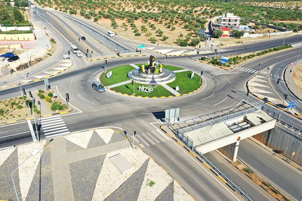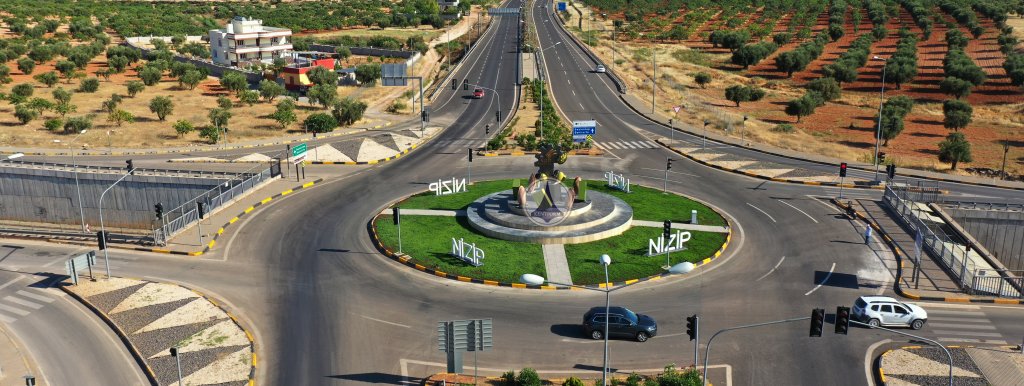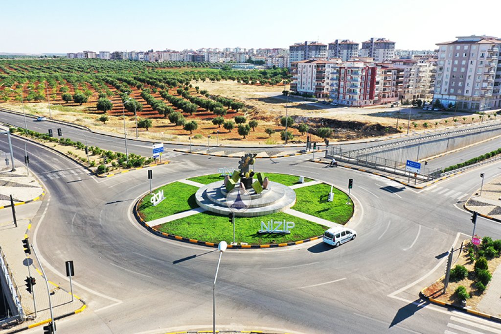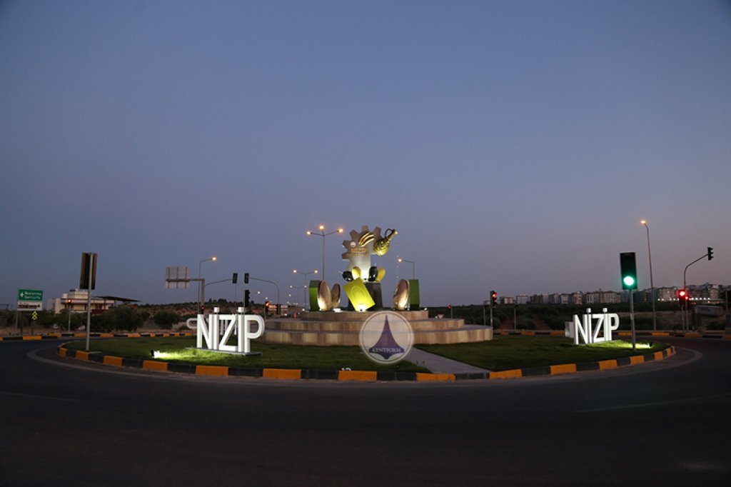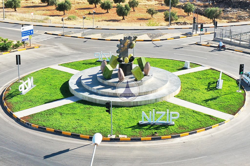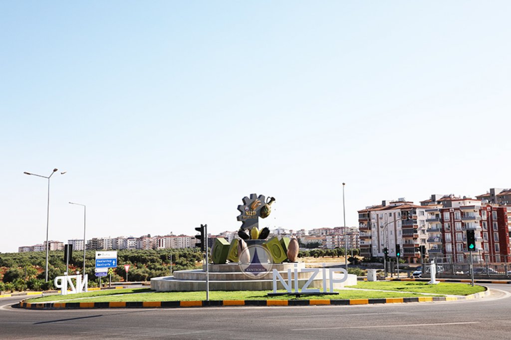 Nizip yöresel temalı şehir anıtında Nizip'in zeytini,fıstığı,Nizip sabunu ve Nizip zeytinyağı ürünleri ilçenin sanayisinin önemli unsurlarından dolayı sanayinin simgesi olan dişli çark ile tasarım bütünlüğü sağlanmış şehir anıtı formunda anıt ve heykellerin imalatları tamamlanmıştır.